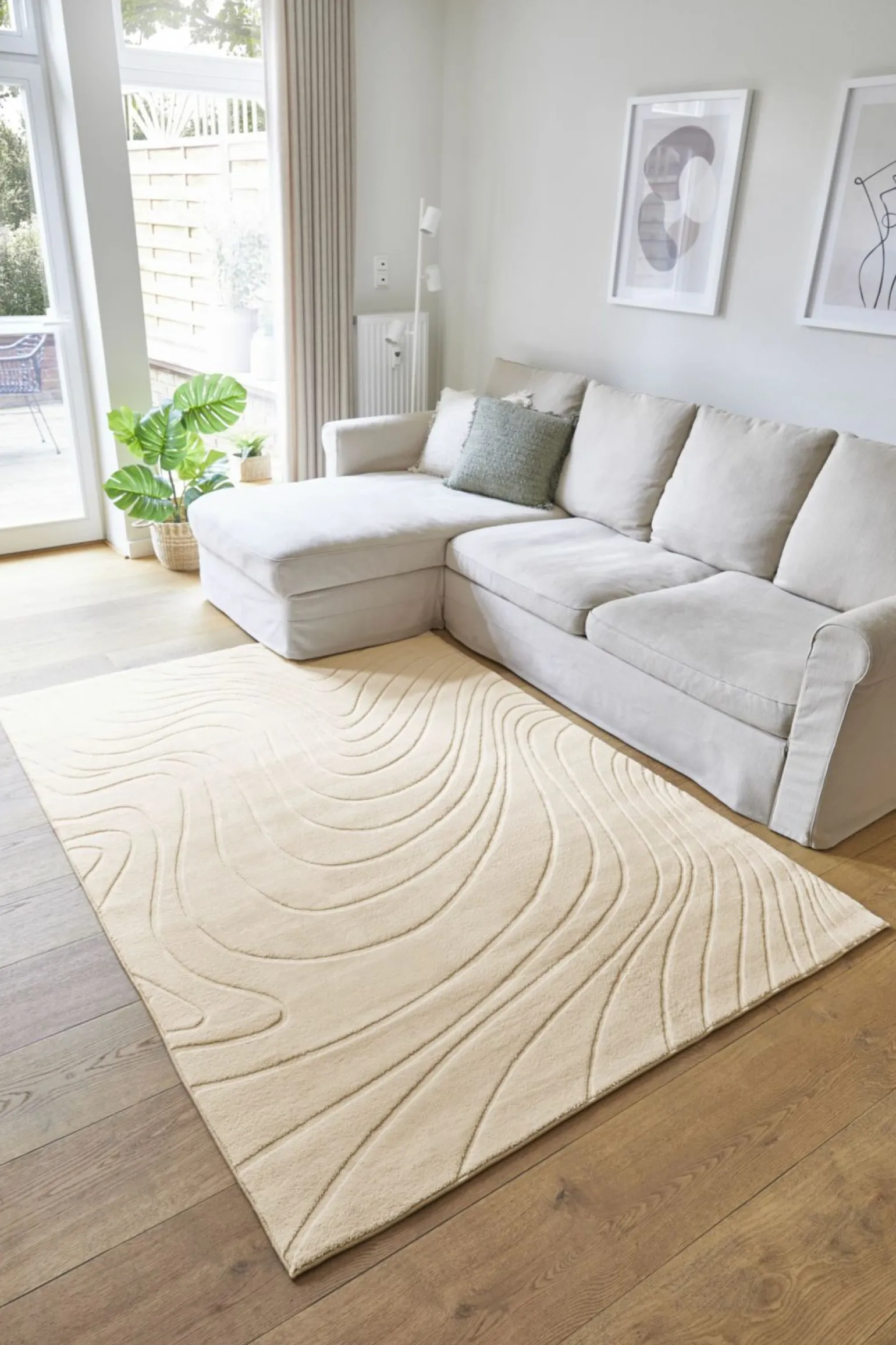 DALE Wellenmuster Webteppich weiß beige