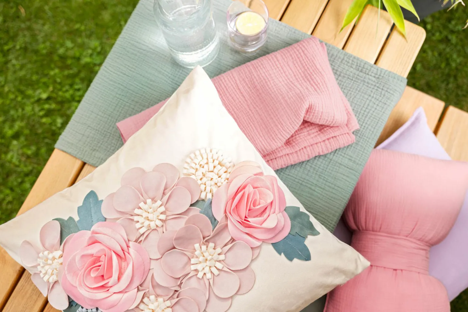 FLOWERY Kissenhülle rosa Polyester
