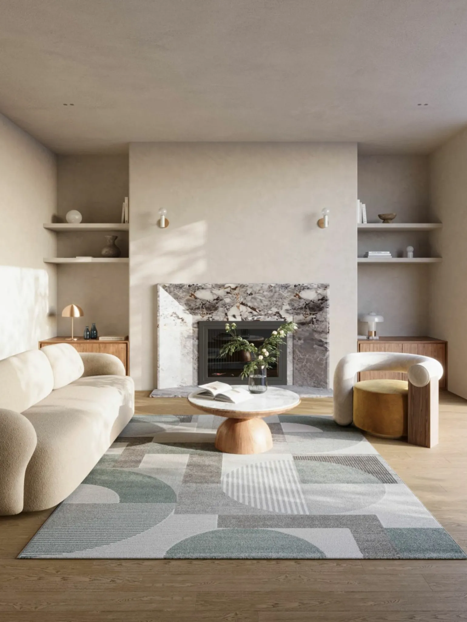 Der MONDO VESCO Bögen mint Webteppich ist die perfekte Ergänzung für ein modernes Zuhause. Mit seiner rechteckigen Form und den harmonischen Farben Weiß, Grau und Blau fügt er sich nahtlos in jedes Interieur ein. Die geschmackvolle Kombination aus 50% Polyester und 50% Polypropylen sorgt für Langlebigkeit und einfache Pflege. Mit einer Breite von 133 cm und einer Länge von 195 cm bietet er genügend Raum, um jedem Raum eine stilvolle Note zu verleihen. Die Höhe von 1,2 cm sorgt für eine angenehme Haptik und einen komfortablen Tritt.