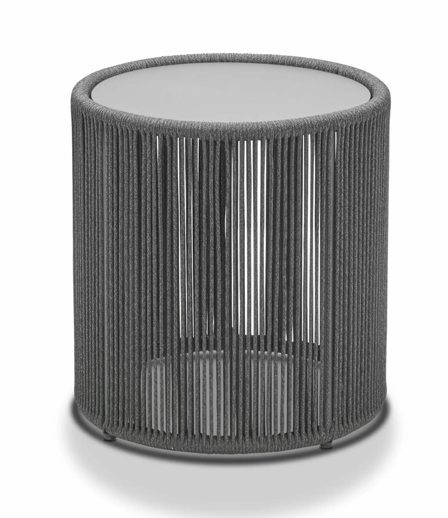 Der Formentera Garten-Beistelltisch verbindet stilvolle Eleganz mit Funktionalität und ist der ideale Begleiter für entspannte Stunden im Freien. Mit einer Höhe von 46 cm und einem Durchmesser von 43 cm bietet der runde Tisch ausreichend Platz für Getränke und Snacks. Das Gestell in einem dezenten Grauton harmoniert perfekt mit der Tischplatte und den Füßen, die aus hochwertigem Aluminium gefertigt sind. Umhüllt von robuster Kordel und Rope, fügt sich der Tisch nahtlos in jede Gartenlandschaft ein und ist ein echter Blickfang für Ihr Outdoor-Wohnzimmer.