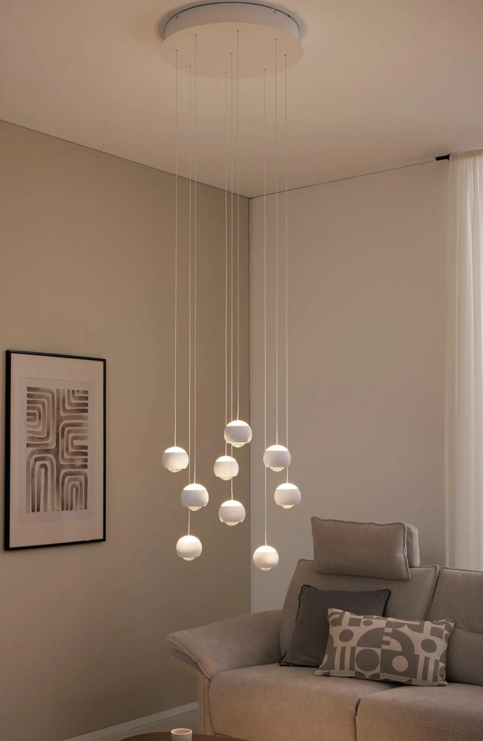 Die moderne CANNON LED-Pendelleuchte bietet mit ihrer stilvollen und minimalistischen Gestaltung das perfekte Highlight für Ihr Zuhause. In elegantem Weiß gehalten und aus hochwertigem Metall gefertigt, bringt diese Leuchte einen Hauch von Raffinesse in jeden Raum. Mit einem beeindruckenden Durchmesser von 54 cm sorgt sie für eine optimale Lichtverteilung und verleiht Ihrem Raum eine angenehme Atmosphäre. Diese 9-flammige Leuchte eignet sich hervorragend für Wohn- oder Essbereiche, in denen modernes Design und Funktionalität geschätzt werden. Erleben Sie die perfekte Balance zwischen Stil und Effizienz.