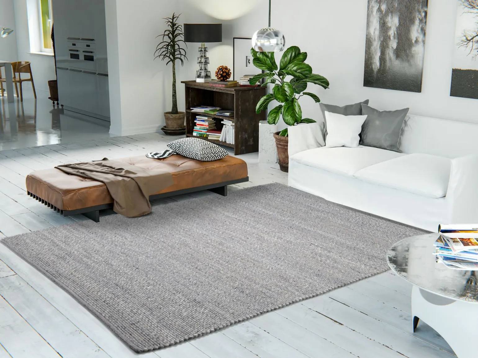 Erleben Sie skandinavische Eleganz mit dem rechteckigen Handwebteppich MALMÖ in einem stilvollen Grauton. Der Teppich hat eine Breite von 90 cm und eine Länge von 160 cm, ideal für ein modernes Wohnambiente. Gefertigt aus einem hochwertigen Mischgewebe, besteht er zu 50% aus Schurwolle, 45% Viskose und 5% aus sonstigen Materialien, was für eine angenehme Haptik und Langlebigkeit sorgt. Der Teppich ergänzt jedes Interieur mit seiner dezenten Farbe und dem klaren, skandinavischen Design. Setzen Sie stilvolle Akzente in Ihrem Zuhause mit diesem zeitlosen Wohnaccessoire.