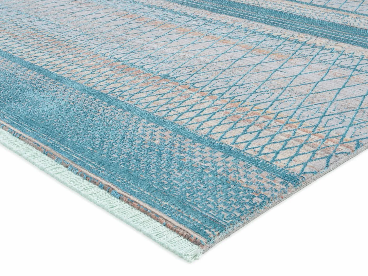 FOKUS Moderner Webteppich Beige Blau Grün