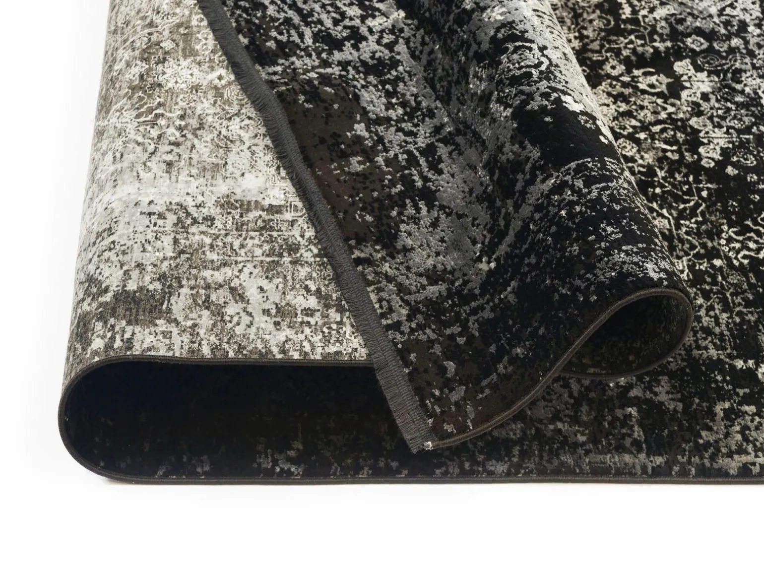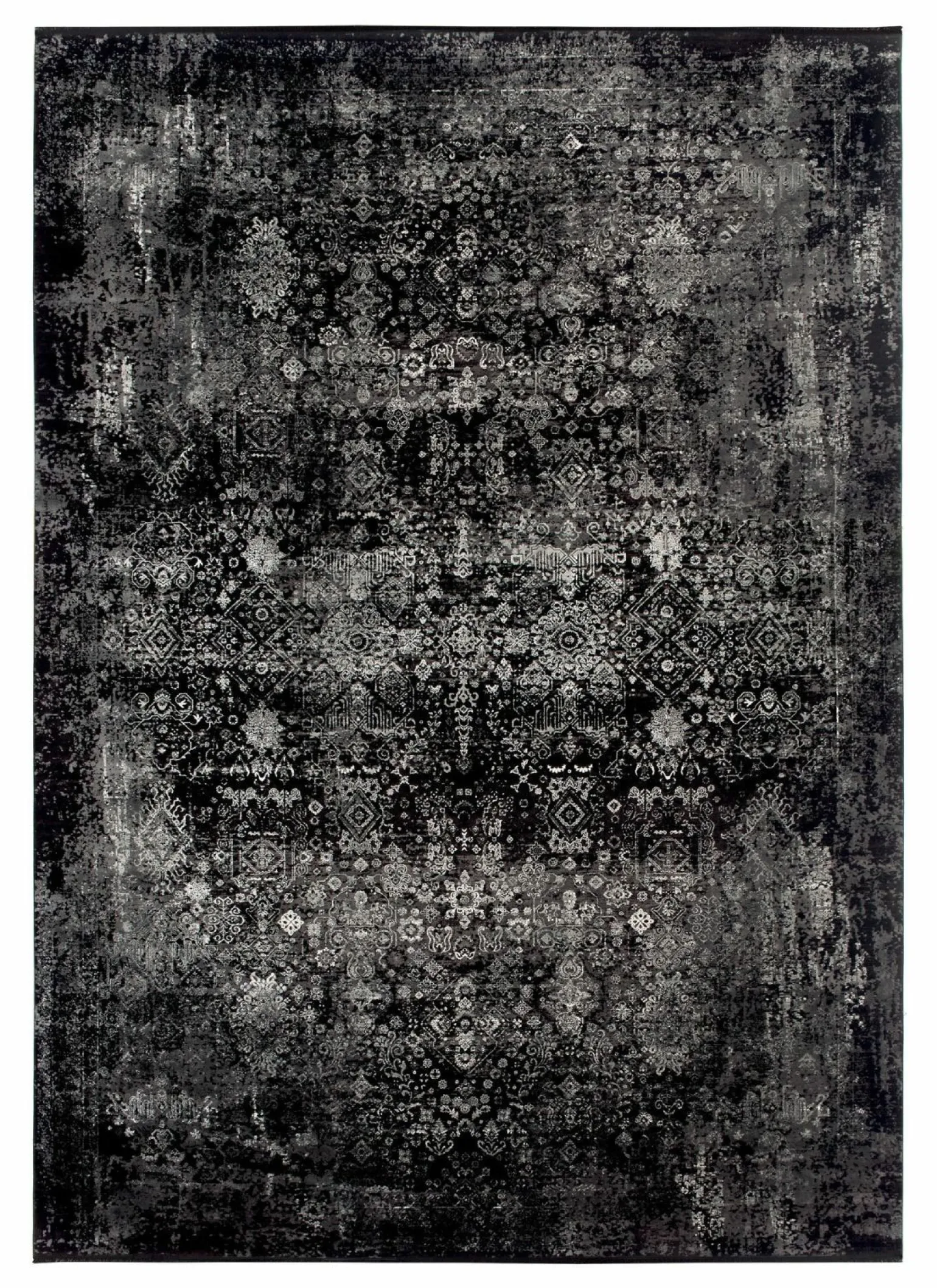 BLOCKBUSTER MOON Moderner Webteppich Grau Schwarz