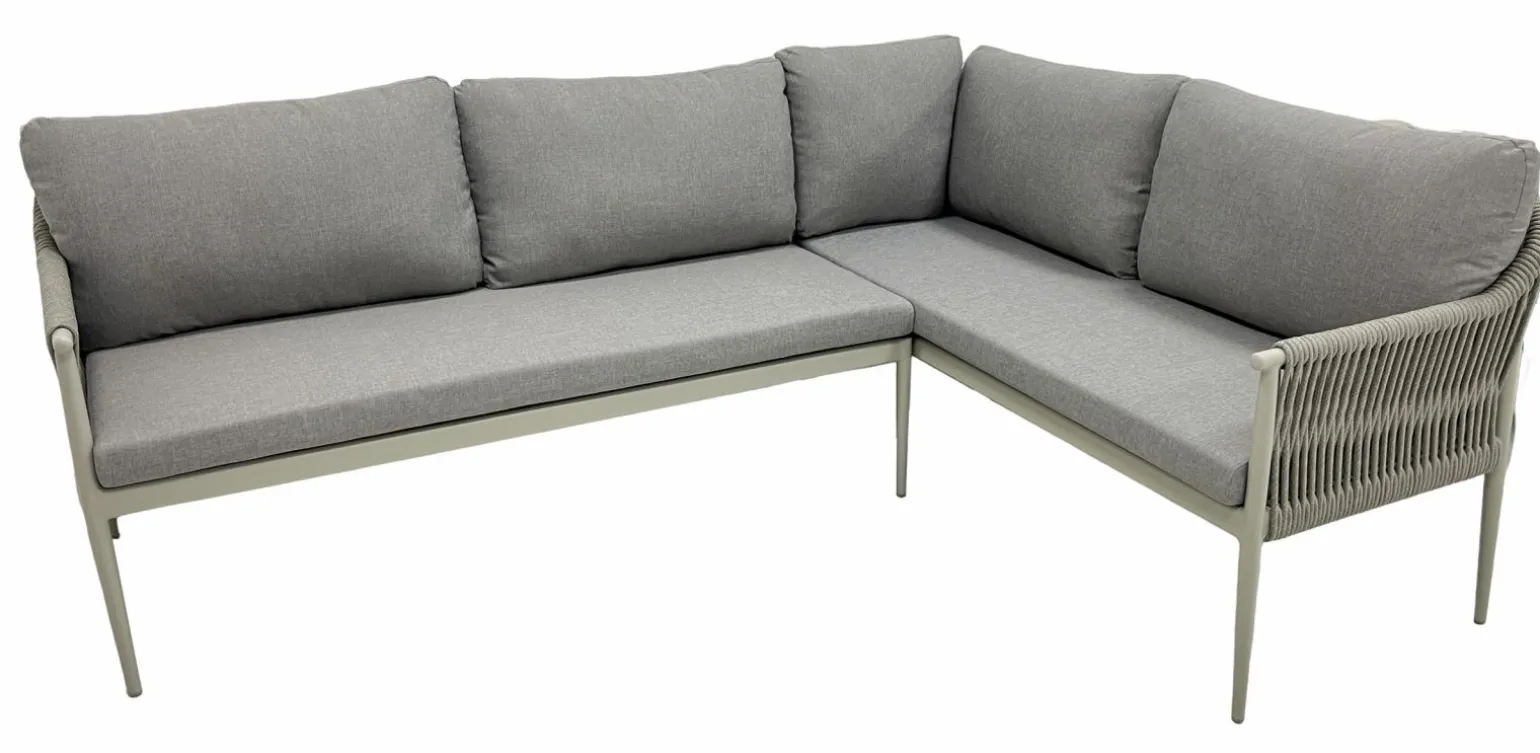 Entdecken Sie die stilvolle und funktionale Bari Ecklounge aus hochwertigem Metall. Diese zweiteilige Sitzgelegenheit kombiniert modernes Design mit Langlebigkeit und ist ideal für jeden Außenbereich. Der robuste Metallrahmen sorgt für Stabilität und verleiht Ihrem Garten oder Ihrer Terrasse einen eleganten Touch. Die durchdachte Konstruktion der Ecklounge macht sie zu einem perfekten Rückzugsort, um entspannte Stunden im Freien zu verbringen. Genießen Sie den Komfort und die Ästhetik dieser außergewöhnlichen Lounge, die sowohl optisch als auch praktisch überzeugt. Ergänzen Sie Ihren Außenbereich mit diesem exquisiten Möbelstück und schaffen Sie eine einladende Atmosphäre.