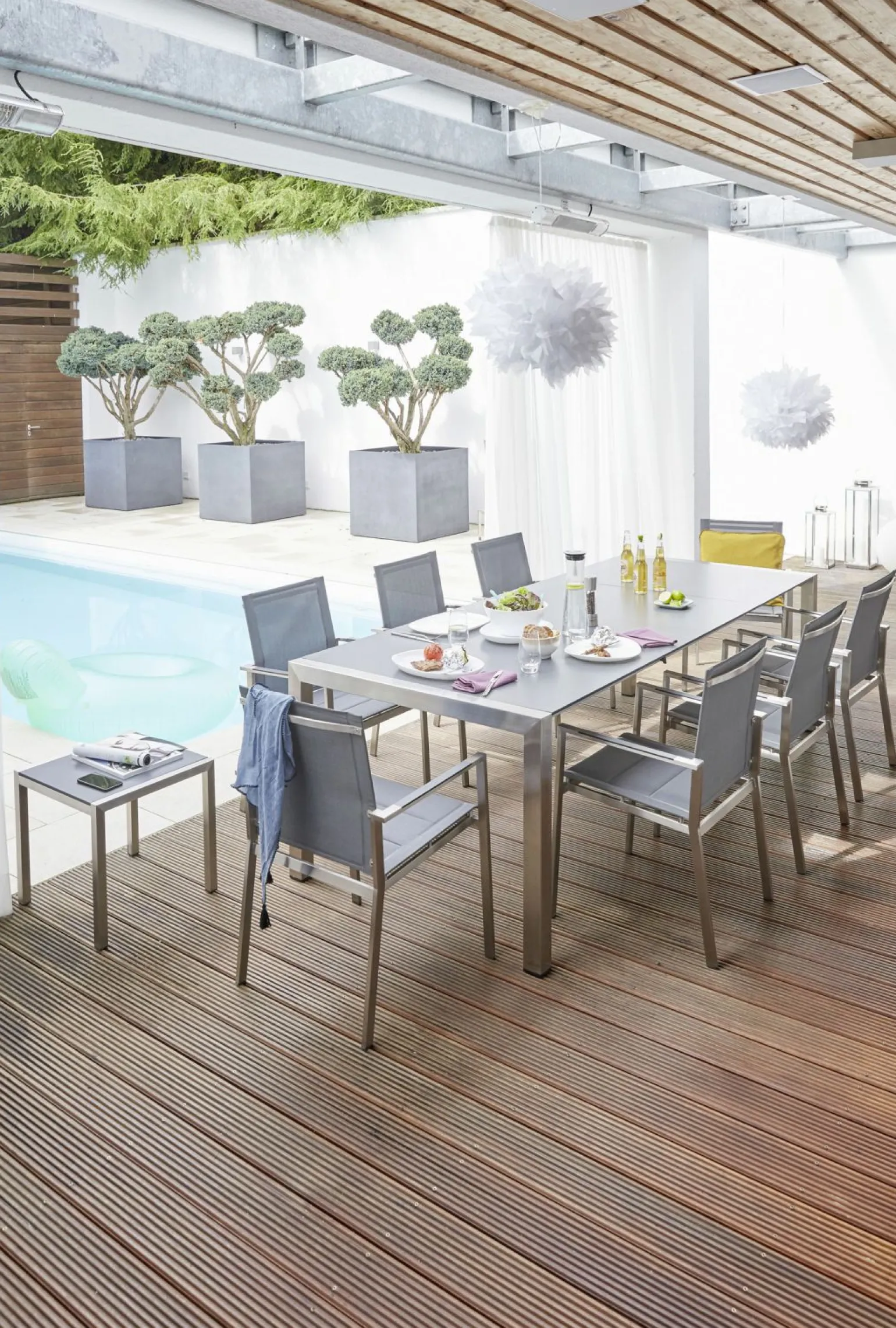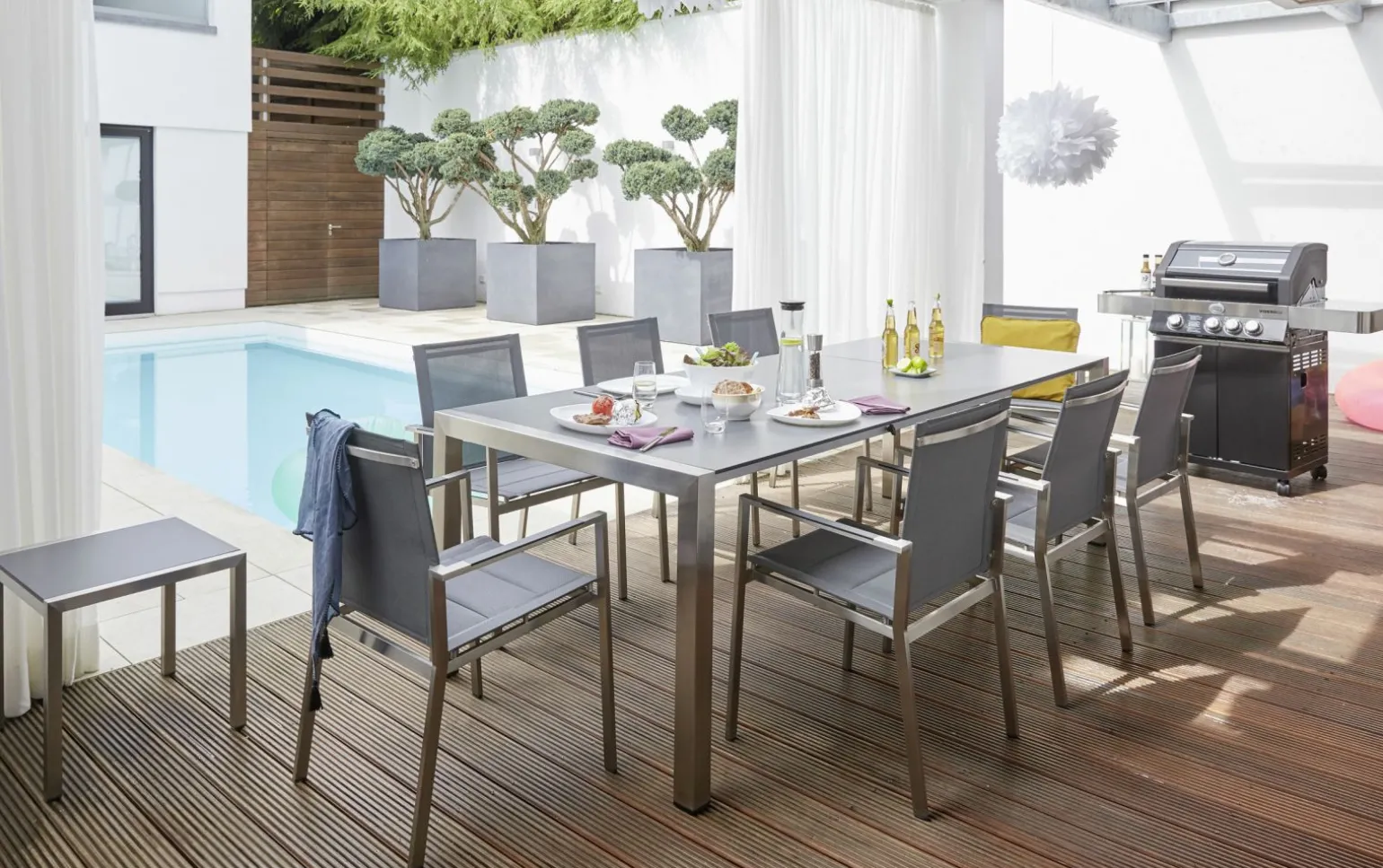 Der Alina Gartentisch ausziehbar aus hochwertigem Edelstahl bringt Eleganz und Funktionalität in Ihren Außenbereich. Mit einer beeindruckenden Breite von 100 cm und einer Höhe von 74 cm bietet dieser Tisch ausreichend Platz für gesellige Runden. Besonders praktisch ist seine ausziehbare Länge, die von 180 cm auf großzügige 250 cm erweitert werden kann, um bei Bedarf mehr Platz zu schaffen. Das robuste HPL-Material garantiert Langlebigkeit und Widerstandsfähigkeit gegen Witterungseinflüsse, sodass Sie lange Freude an Ihrem Tisch haben. Genießen Sie stilvolle und flexible Outdoor-Momente mit diesem vielseitigen Möbelstück.