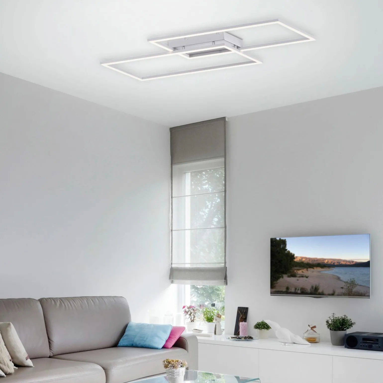 Verleihen Sie Ihrem Raum mit der hochwertigen INIGO LED-Deckenleuchte in edlem Silber einen modernen Touch. Diese stilvolle Leuchte besticht durch ihr schlankes Design, das aus robustem Metall gefertigt ist und sich perfekt in jede Umgebung einfügt. Mit einer Breite von 24,2 cm und einer beeindruckenden Tiefe von 83,6 cm bietet sie eine gleichmäßige Lichtverteilung über zwei Lichtquellen. Die Höhe von 7 cm sorgt dafür, dass die Leuchte dezent an Ihrer Decke schwebt und dennoch ein Highlight setzt. Ideal für moderne Wohn- und Arbeitsräume, in denen Funktionalität auf Eleganz trifft.