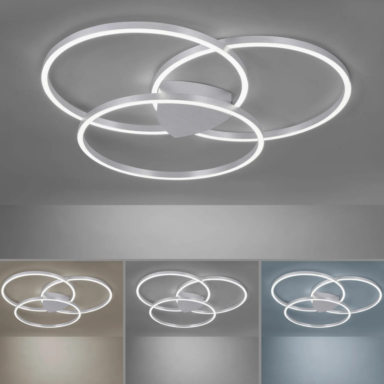 Erleben Sie die stilvolle Eleganz der Q-KATE LED-Deckenleuchte in edlem Silber. Mit einer Breite von 91,1 cm und einer Höhe von 8,5 cm fügt sich diese dreiflammige Beleuchtung nahtlos in jedes moderne Interieur ein. Die robuste Metallkonstruktion verspricht Langlebigkeit und stabilen Halt. Mit einem Durchmesser von 93,1 cm bietet die Leuchte eine großzügige Ausleuchtung und setzt stilvolle Akzente in Ihrem Raum. Die modernen LED-Technologien sorgen für eine effiziente und umweltfreundliche Beleuchtungslösung, die gleichzeitig warmes, einladendes Licht spendet. Entdecken Sie die perfekte Kombination aus Design und Funktionalität.