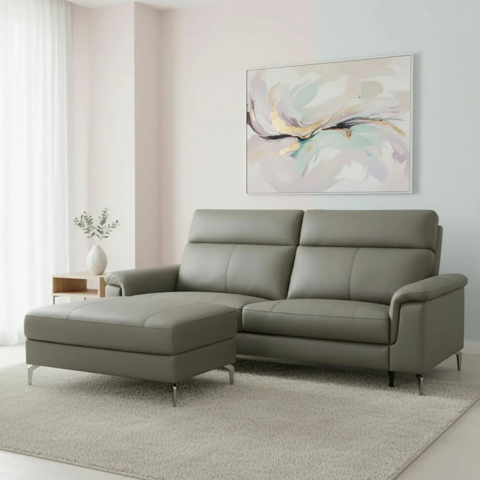 Erleben Sie modernen Komfort mit der Ugur Polstergarnitur in elegantem Grau. Dieses stilvolle Möbelstück kombiniert zeitgenössisches Design mit praktischer Funktionalität. Der hochwertige Stoffbezug verleiht jedem Raum ein Gefühl von Eleganz und Gemütlichkeit. Mit einer großzügigen Breite von 162 cm und einer Tiefe von 240 cm bietet es reichlich Platz für entspannte Stunden. Die Sitzhöhe von 49 cm und die Sitztiefe von 53 cm sorgen für optimalen Komfort. Die Polstergarnitur harmoniert perfekt mit modernen Einrichtungskonzepten und wird schnell zum Mittelpunkt Ihres Wohnzimmers.