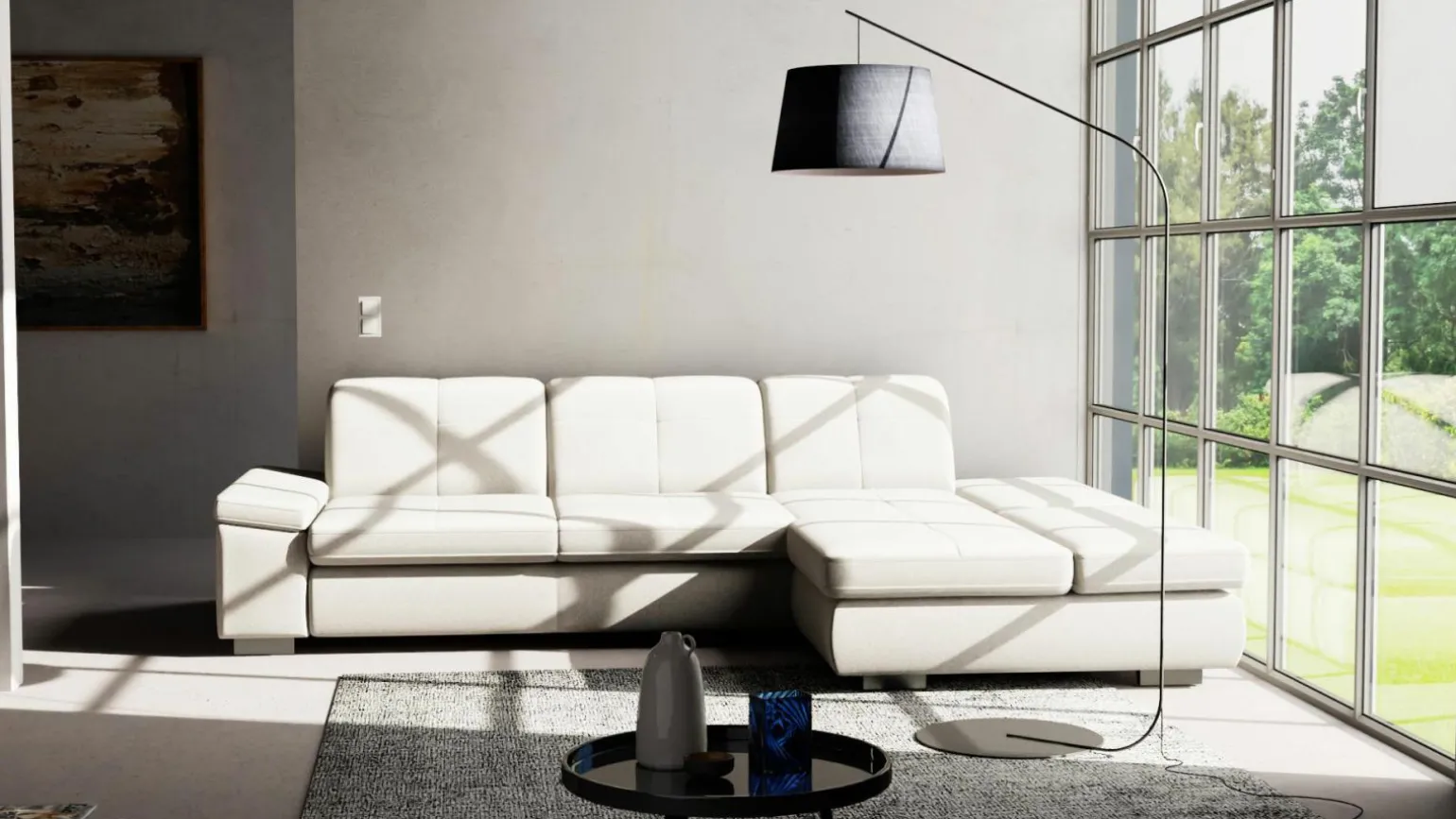 Erleben Sie modernen Komfort mit der stilvollen Polstergarnitur Mondstern-S in elegantem Grau. Gefertigt aus hochwertigem Stoff, bietet diese Garnitur eine Sitzhöhe von 47 cm und eine großzügige Sitztiefe von 79 cm, die für optimalen Sitzkomfort sorgt. Mit einer beeindruckenden Breite von 319 cm und einer Tiefe von 218 cm fügt sich dieses Möbelstück perfekt in jedes moderne Zuhause ein. Die variable Höhe von 85 bis 100 cm ermöglicht eine individuelle Anpassung. Dieses Design vereint Ästhetik und Funktionalität in Perfektion und wird zum Highlight in Ihrem Wohnraum.