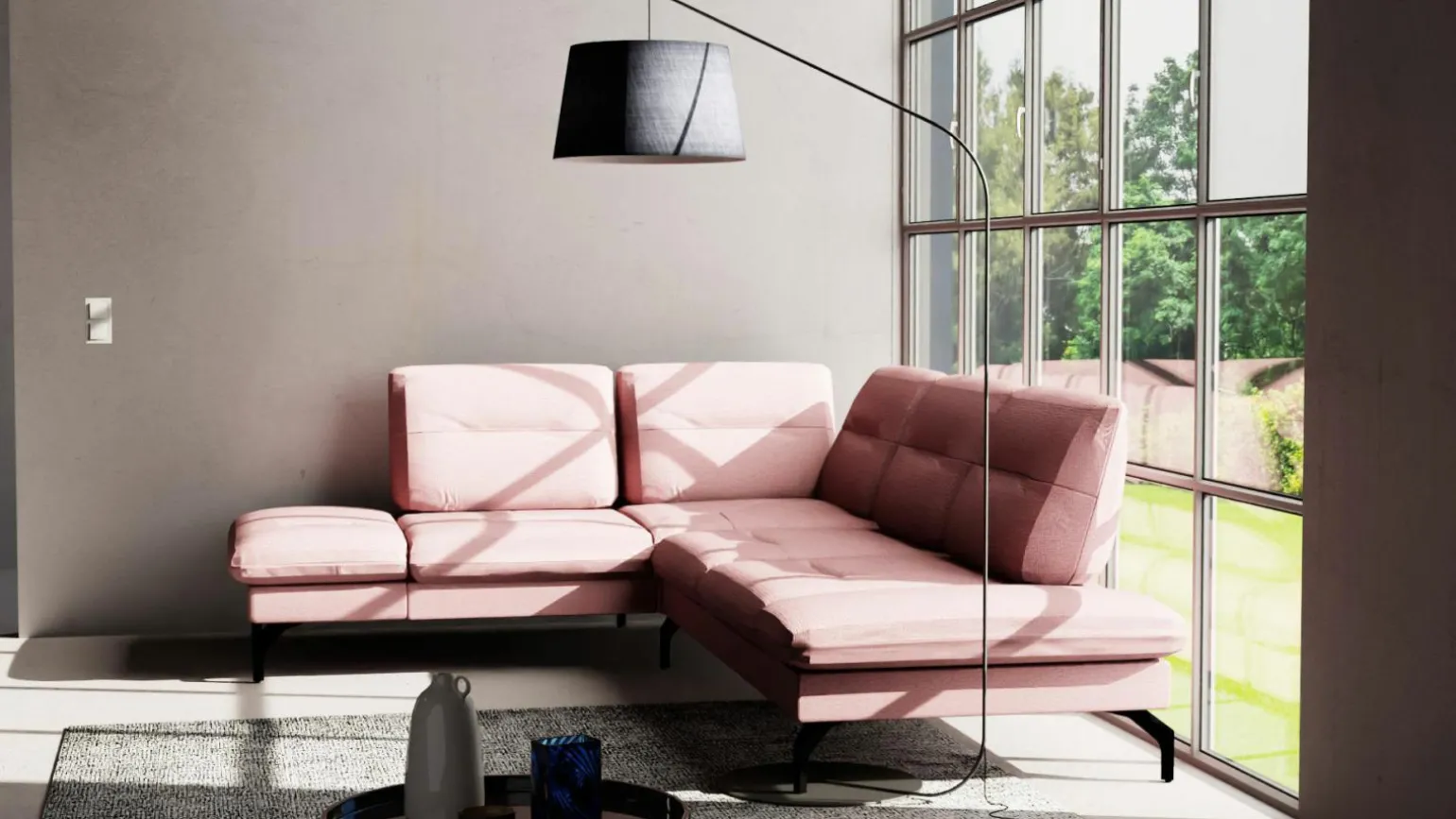 Erleben Sie den modernen Komfort mit der stilvollen Polstergarnitur Pamelina. Mit einer beeindruckenden Breite von 235 cm und einer Tiefe von 295 cm bietet dieses elegante Möbelstück in einem satten Violett-Ton reichlich Platz für entspannte Stunden. Der hochwertige Stoff sorgt nicht nur für ein angenehmes Sitzgefühl, sondern verleiht Ihrem Wohnraum auch einen Hauch von Luxus. Die Sitzhöhe von 46 cm und die anpassbare Sitztiefe von 55-70 cm ermöglichen individuellen Komfort. Mit einer Höhe von 90 cm fügt sich die Garnitur nahtlos in jedes moderne Interieur ein.