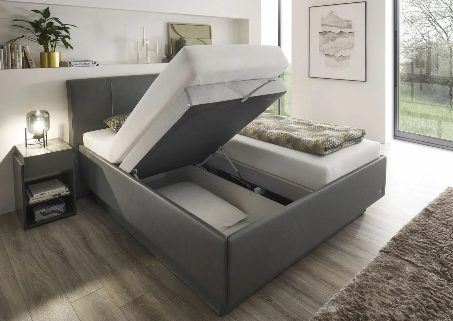 - Integrierter Bettkasten für mehr Stauraum
