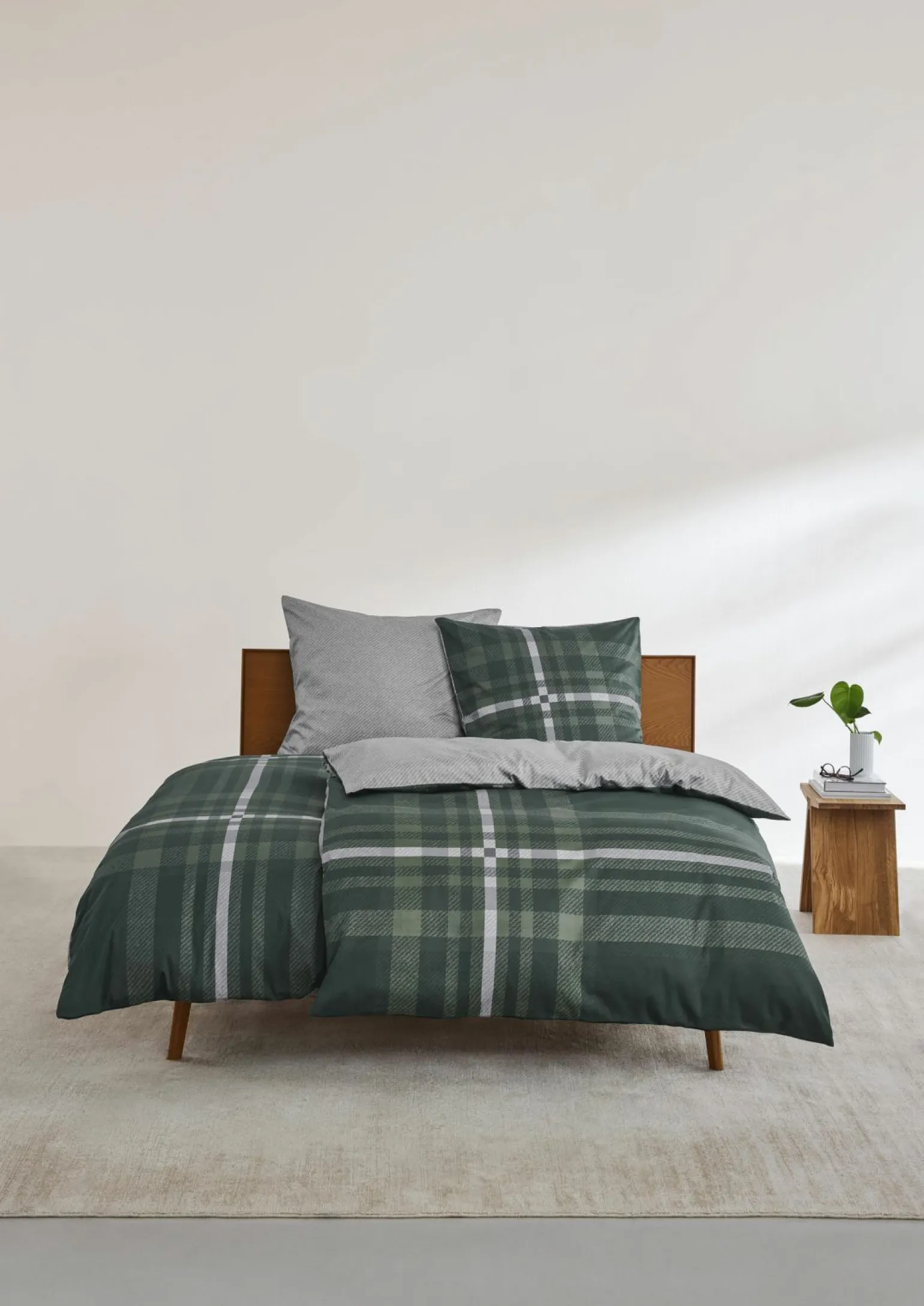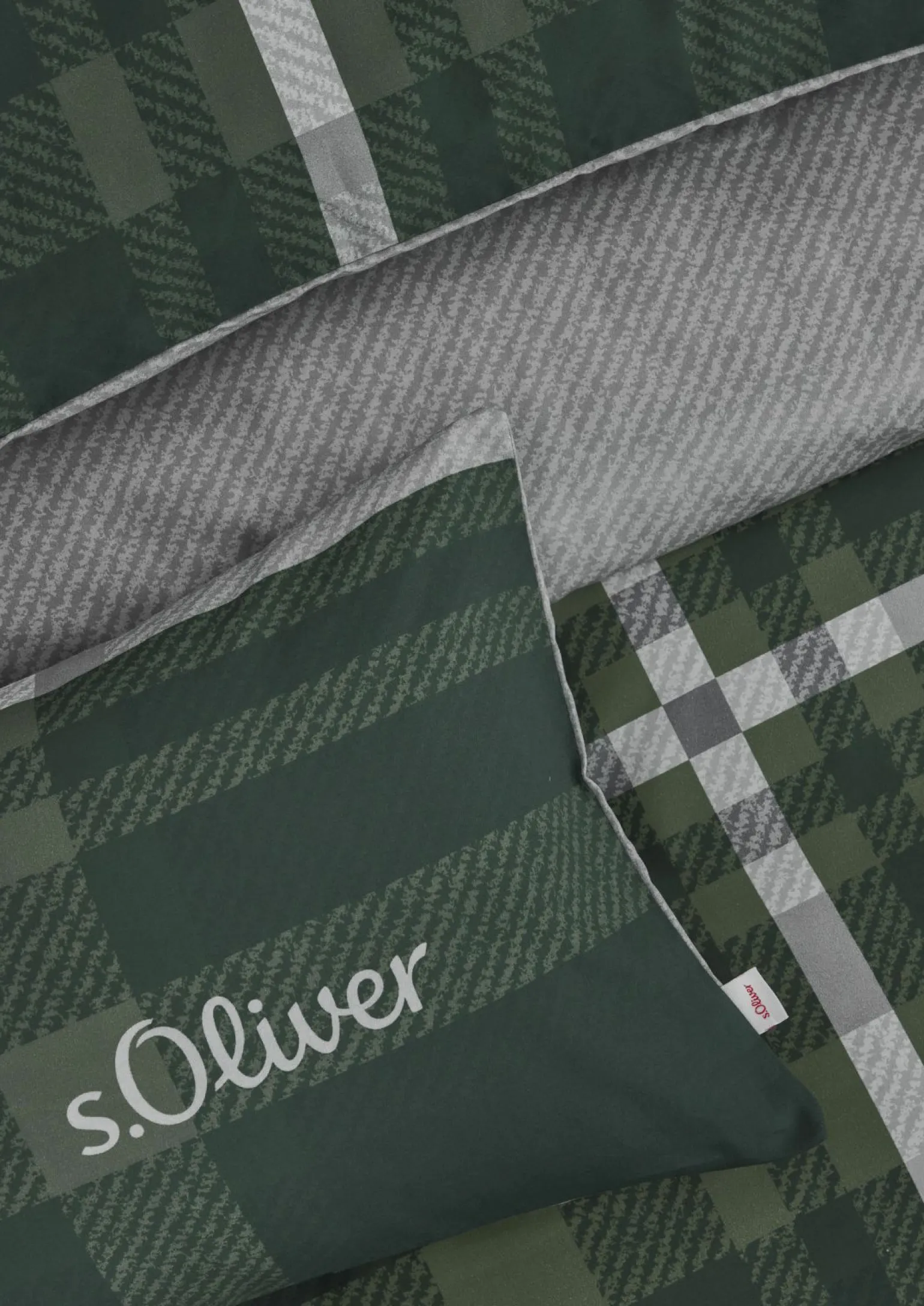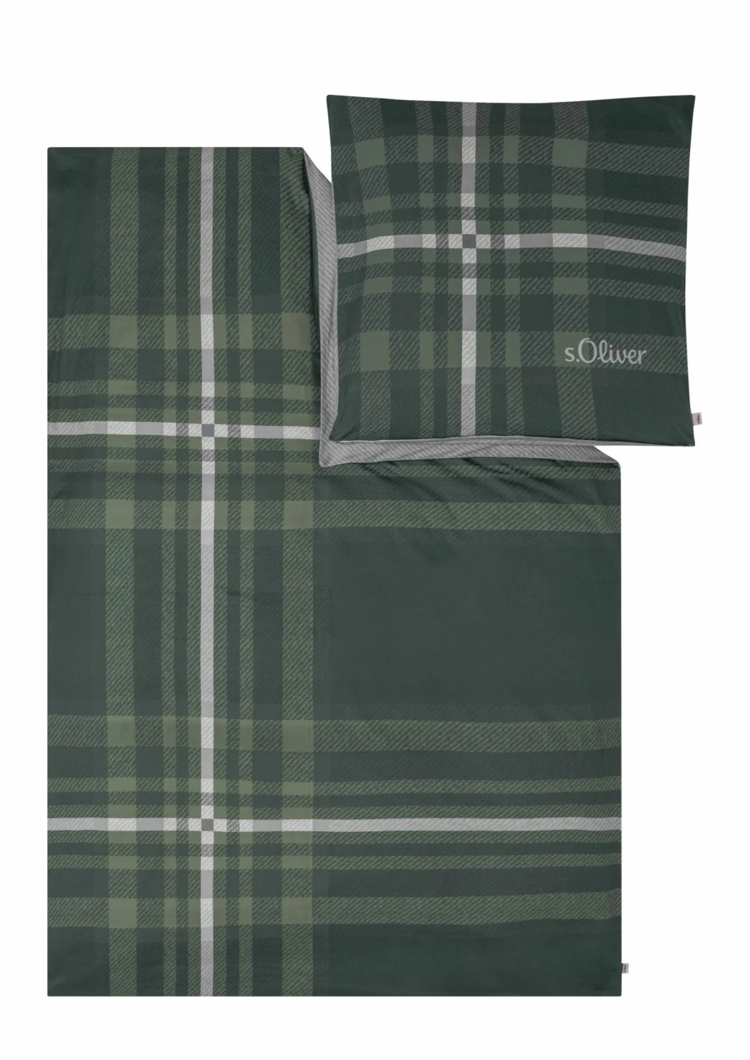 s.Oliver-Satin-Bettwäsche aus Baumwolle in Grün/Grau