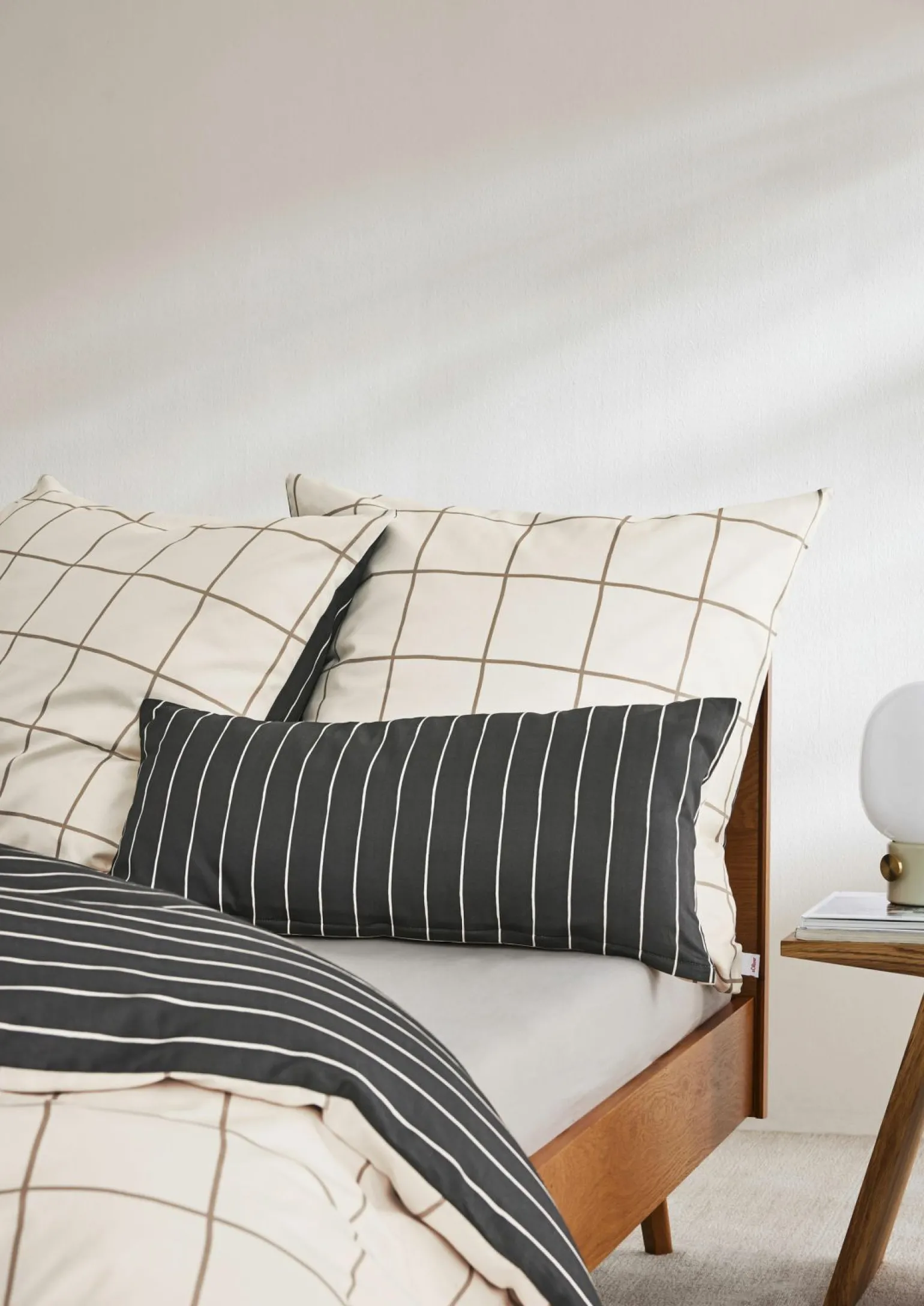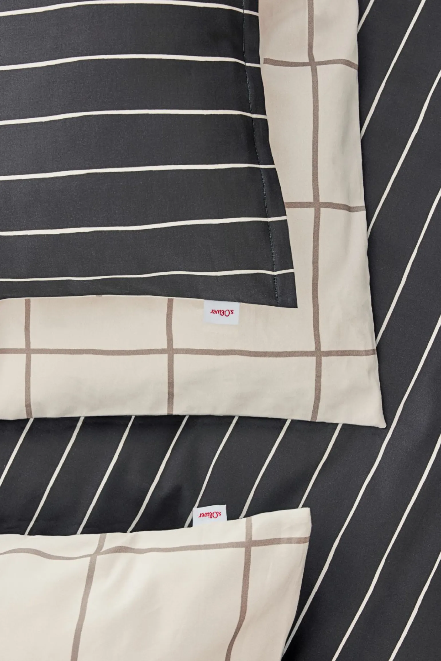s.Oliver-Satin-Bettwäsche Baumwolle grau beige