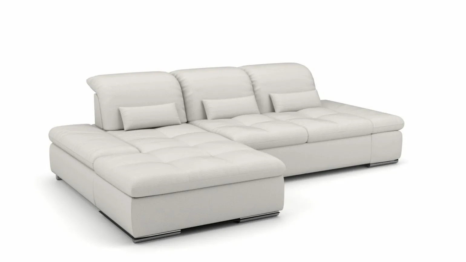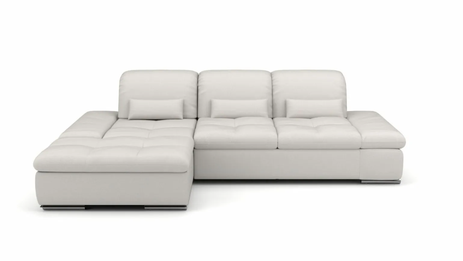 Entdecken Sie die moderne Eleganz der Eckgarnitur, die mit ihrem stilvollen grauen Stoffbezug und einem robusten Metallgestell beeindruckt. Mit einer Breite von 284 cm und einer Tiefe von 190 cm bietet sie ausreichend Platz für drei Personen und lädt zu gemütlichen Stunden ein. Die Sitzhöhe von 43 cm sorgt für optimalen Komfort, während der Echtrücken die Garnitur auch von hinten attraktiv macht. Die verstellbare Höhe von 80 bis 98 cm ermöglicht Ihnen flexible Anpassungen. Dieses Möbelstück vereint modernes Design mit hoher Funktionalität und wird zum Highlight jedes Wohnzimmers.