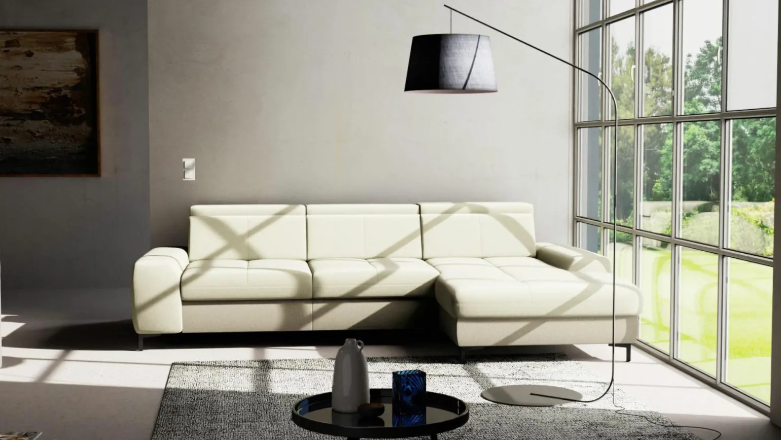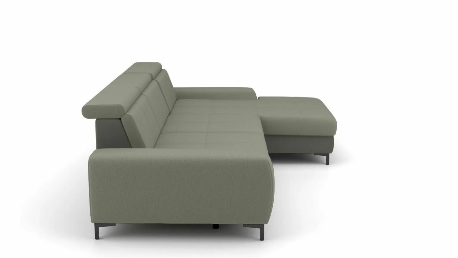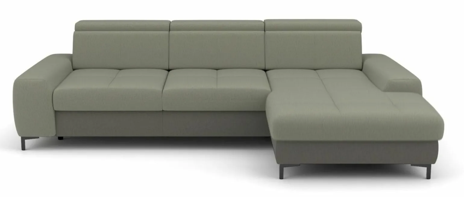 Die moderne Eckgarnitur SO 3400 in elegantem Grün bringt stilvolle Akzente in Ihren Wohnraum. Sie überzeugt durch ihre großzügigen Dimensionen mit einer Breite von 307 cm und einer Tiefe von 195 cm, die für ein komfortables Sitzerlebnis sorgen. Der hochwertige Stoffbezug und die 47 cm Sitzhöhe bieten optimalen Komfort. Die Rückseite der Eckgarnitur ist in Echtrücken-Ausführung gehalten, was sie besonders vielseitig platzierbar macht. Stabilität und ein Hauch von Eleganz verleihen die Metallfüße. Diese Kombination aus Design und Funktionalität macht die Eckgarnitur zu einem Highlight in jedem modernen Zuhause.
