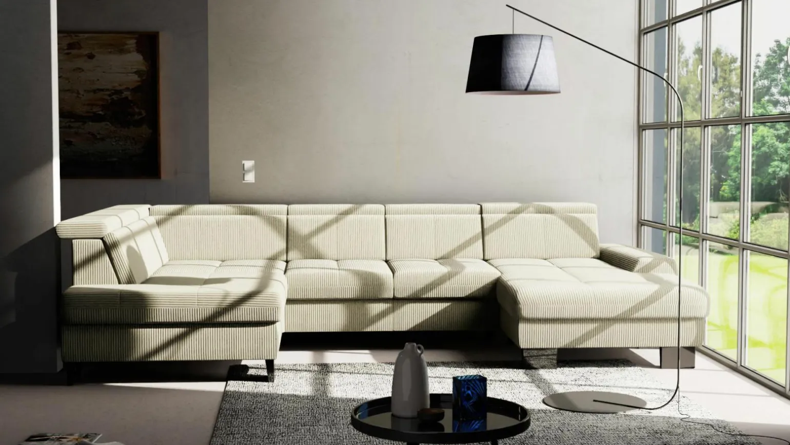 Erleben Sie modernen Komfort mit der stilvollen Wohnlandschaft SO 3400 in einem frischen Grünton. Diese großzügige Wohnlösung besticht durch ihre harmonische Kombination aus hochwertigem Stoffbezug und einem robusten Metallgestell. Die komfortable Sitzhöhe von 49 cm und die beeindruckenden Dimensionen von 84 cm in der Höhe und 373 cm in der Breite bieten Ihnen und Ihren Gästen ausreichend Platz zum Entspannen. Mit einem Echtrücken ausgestattet, fügt sich dieses Stück nahtlos in jedes moderne Zuhause ein und wird schnell zum Mittelpunkt Ihres Wohnraums. Tauchen Sie ein in ein neues Level des Wohnkomforts.