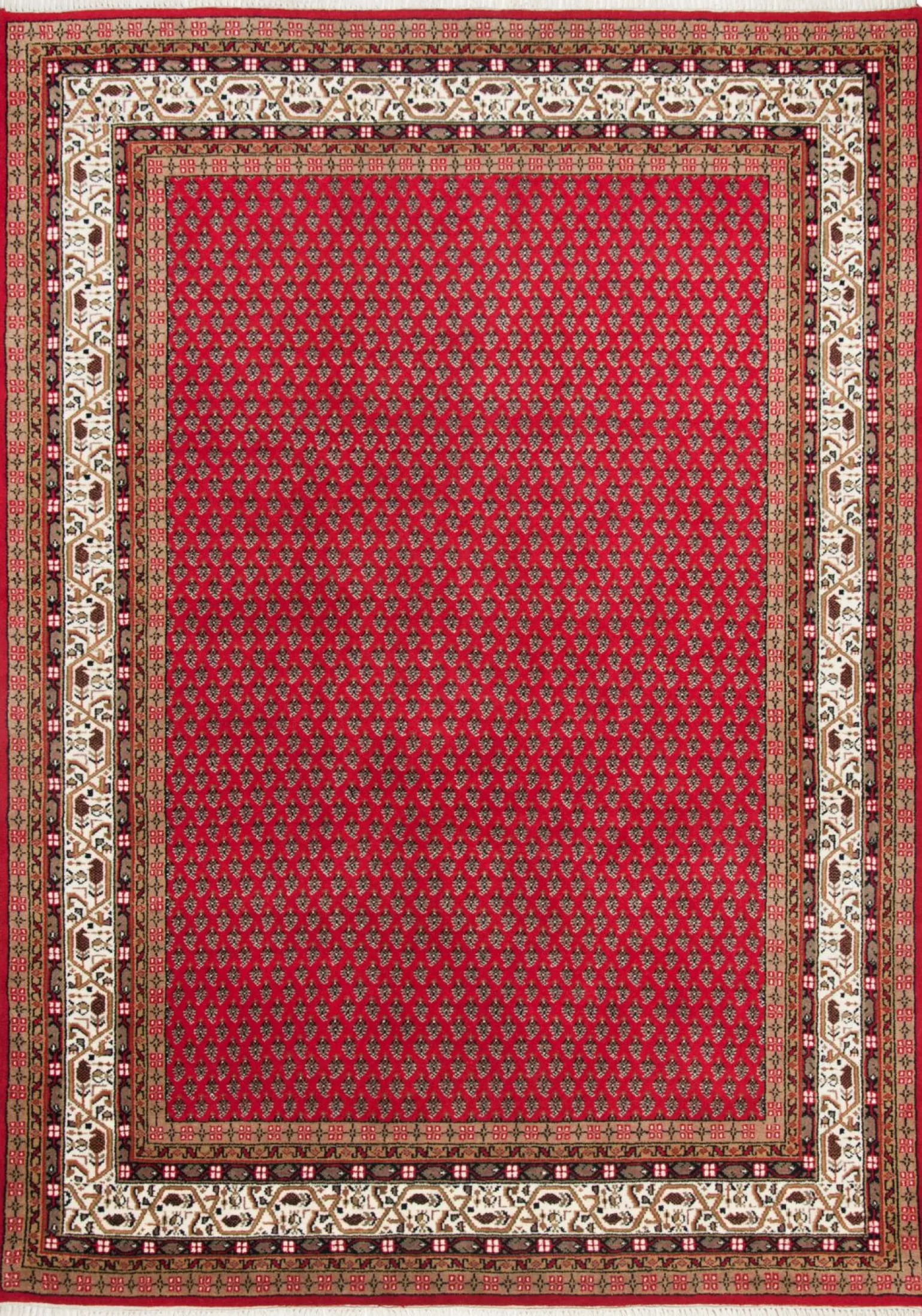 Chandi Mir Handknüpfteppich Schurwolle Rot Beige