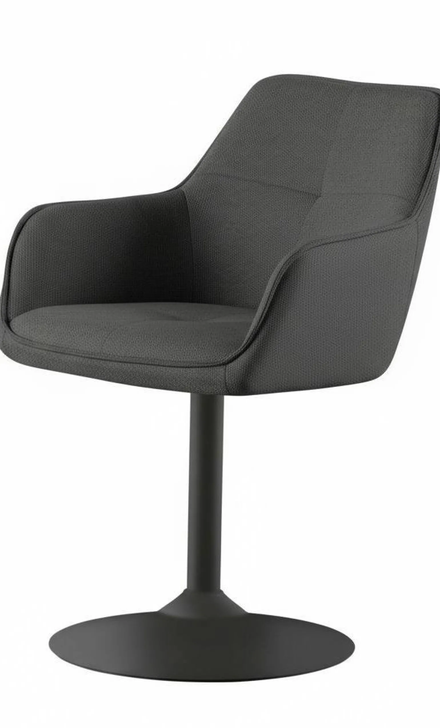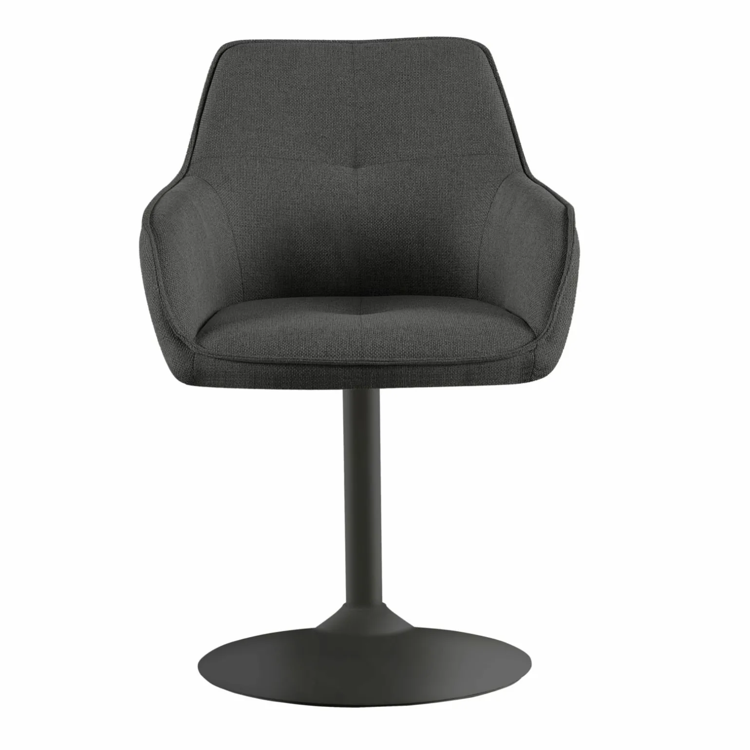 Erleben Sie modernsten Komfort und stilvolle Eleganz mit dem drehbaren Kitt Trompetenfußstuhl. Der Stuhl besticht durch seinen modernen Stil und seine tiefschwarze Farbe, die jedem Raum eine zeitgemäße Note verleiht. Mit einer Sitzhöhe von 51 cm und einer Sitztiefe von 44 cm bietet er optimalen Sitzkomfort. Das schwarze Gestell in der Tellerfuß-Variante sorgt für Stabilität und Eleganz. Der Stoffbezug ergänzt das Design und macht den Stuhl zu einem robusten und ästhetischen Möbelstück, das bis zu 120 kg belastbar ist. Drehen Sie sich mühelos mit dem um 360 Grad drehbaren Sitz.