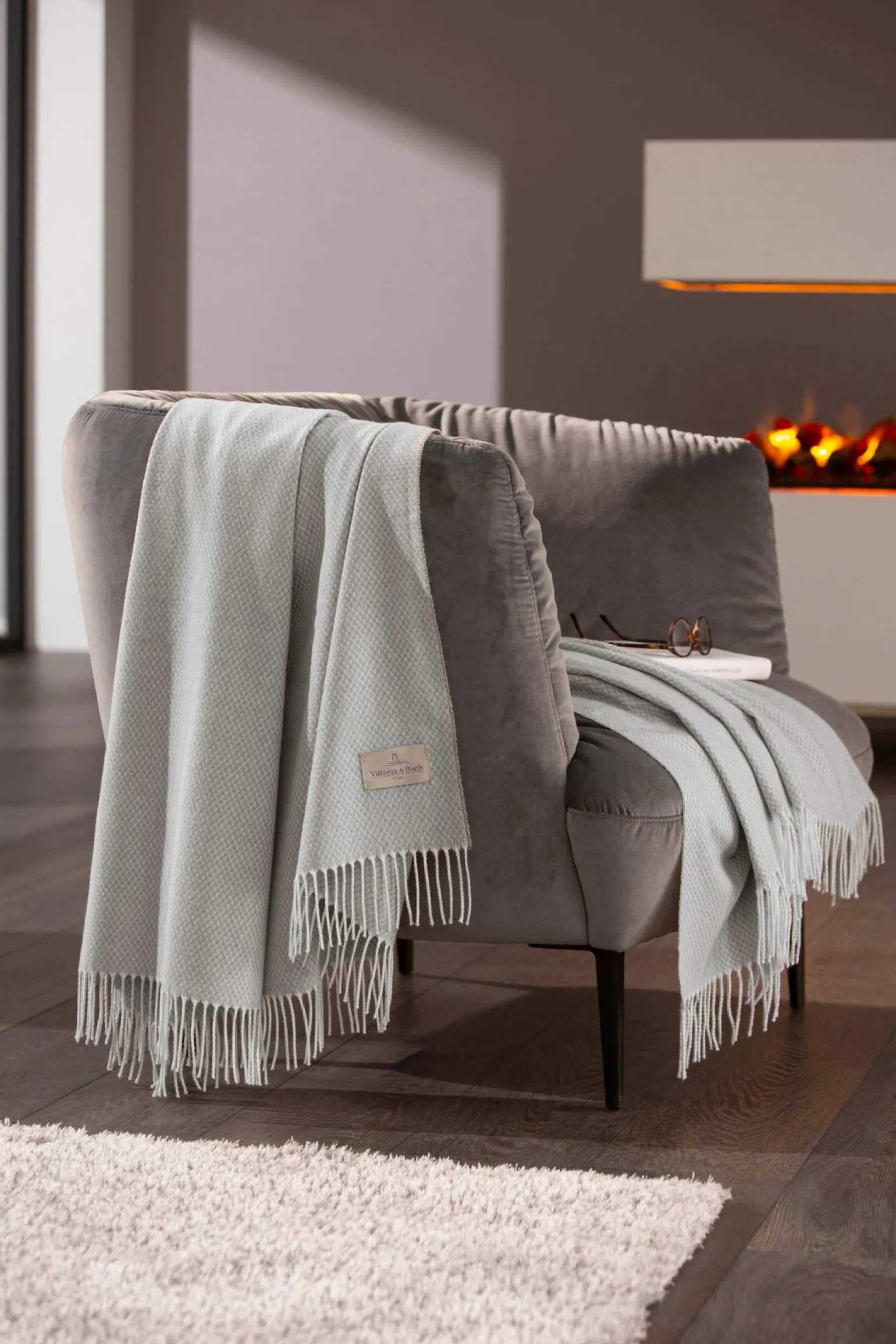 Villeroy & Boch Fransenplaid graublauschwarz