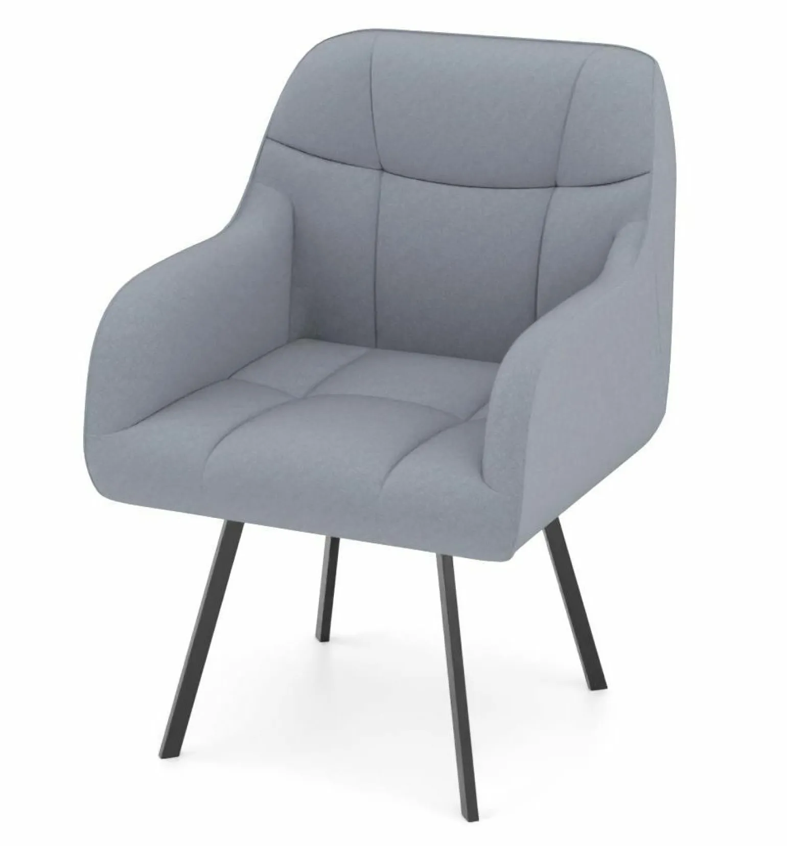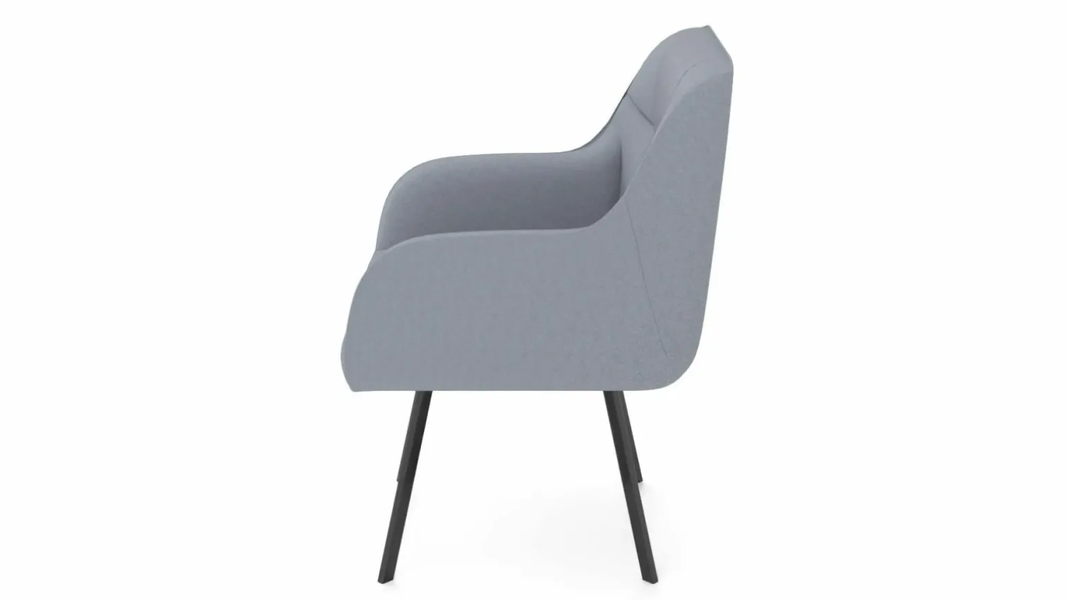 Entdecken Sie den modernen Armlehnstuhl Modell 9092 in einem eleganten Blau. Dieser Stuhl kombiniert stilvolles Design mit hohem Komfort. Der Bezug aus hochwertigem Stoff sorgt für eine angenehme Haptik und ein luxuriöses Sitzgefühl. Die ergonomischen Armlehnen laden zum Entspannen ein, während das schwarze Metallgestell mit 4-Fuß-Variante für Stabilität und Langlebigkeit sorgt. Mit einer Höhe von 84 cm, Breite von 62 cm und einer Tiefe von 64 cm fügt sich dieser Stuhl perfekt in jedes zeitgemäße Interieur ein. Ein Must-have für stilbewusste Einrichtungsliebhaber.
