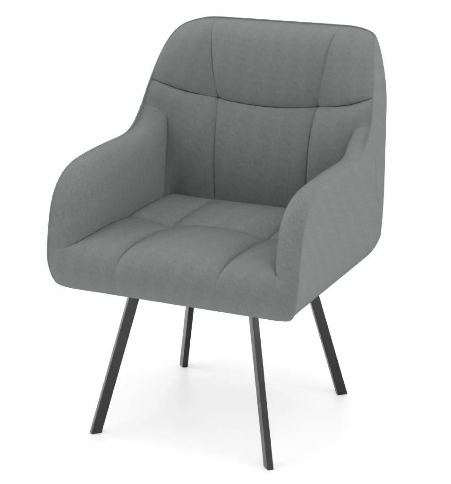 Erleben Sie modernen Komfort mit dem Armlehnstuhl Modell 9092. Das Design in einem eleganten silberfarbenen Ton ist eine perfekte Ergänzung für jeden zeitgenössischen Raum. Der Stuhl ist mit einem hochwertigen Stoff bezogen, der nicht nur stilvoll, sondern auch langlebig ist. Die Armlehnen bieten zusätzlichen Komfort, während das robuste schwarze Metallgestell mit seinen vier Beinen Stabilität und Langlebigkeit gewährleistet. Mit einer Höhe von 84 cm, einer Breite von 62 cm und einer Tiefe von 64 cm passt dieser Stuhl perfekt in Ihre Wohn- oder Büroräume und bietet eine moderne Sitzlösung.