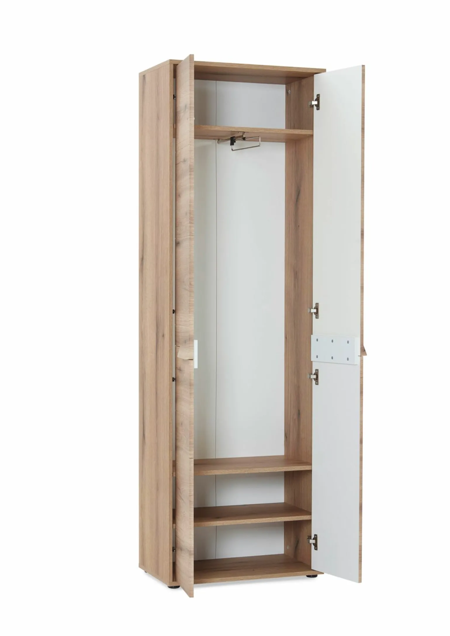 Der Garderobenschrank Vito Perado bietet eine klassische und elegante Lösung für Ihre Aufbewahrungsbedürfnisse. Mit seiner stilvollen Kombination aus schwarz und braun passt er perfekt in jedes Zuhause und verleiht Ihrem Eingangsbereich einen Hauch von Raffinesse. Der Schrank ist 197 cm hoch und 64 cm breit, mit einer Tiefe von 37 cm, was ausreichend Platz für Kleidung und Accessoires bietet. Seine robuste Konstruktion sorgt für Langlebigkeit, während das zeitlose Design sich nahtlos an unterschiedliche Einrichtungsstile anpasst. Ein idealer Begleiter für Ordnung und Stil in Ihrem Zuhause.