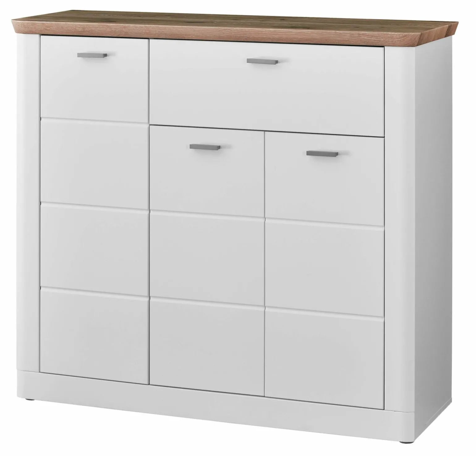 Entdecken Sie die moderne Vito Recess Kommode, die mit ihrem stilvollen Design und den Farben Braun, Weiß, Silber und Schwarz besticht. Mit einer Höhe von 113 cm und einer Breite von 125 cm bietet diese Kommode aus hochwertigem Holzfaserwerkstoff vielseitige Einsatzmöglichkeiten. Die Tiefe von 40 cm ermöglicht es, sie in verschiedensten Räumen einzusetzen, während das moderne Design das Ambiente Ihres Zuhauses aufwertet. Ideal für die Aufbewahrung Ihrer persönlichen Gegenstände, kombiniert die Kommode Funktionalität mit Ästhetik und passt sich nahtlos in jedes Interieur ein.