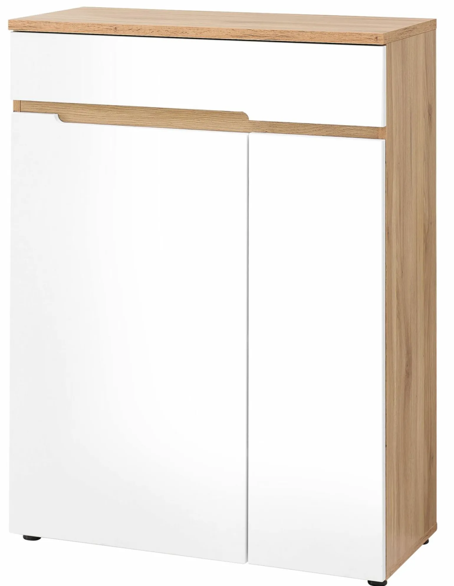 Die Vito Clyde Kommode ist eine stilvolle Ergänzung für Ihr Zuhause, die durch ihr elegantes Design in Weiß und Braun besticht. Gefertigt aus hochwertigem Holzfaserwerkstoff, bietet sie nicht nur eine ästhetische Optik, sondern auch Langlebigkeit und Stabilität. Mit einer Höhe von 107 cm, einer Breite von 80 cm und einer Tiefe von 38 cm passt sie perfekt in verschiedene Wohnräume und bietet ausreichend Stauraum für Ihre persönlichen Gegenstände. Diese Kommode vereint Funktionalität und modernes Design und wird so zum Highlight in jedem Raum.