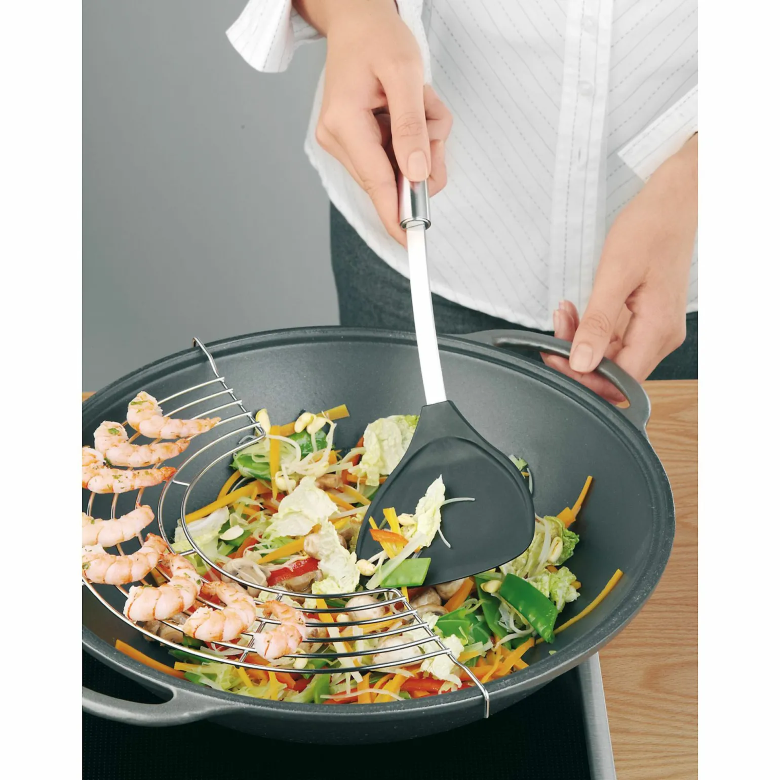 Tauchen Sie ein in die Welt der professionellen Küchenhelfer mit dem Profi Plus Wender. Dieses Modell, hervorstechend durch seine schwarz-silberne Farbe, ist aus hochwertigem Metall gefertigt und garantiert somit Langlebigkeit und Stabilität auch bei häufigem Gebrauch. Mit einer Länge von 35cm ist er ideal für das Wenden und Servieren verschiedenster Speisen, ohne sich die Finger zu verbrennen. Ein weiteres Highlight ist, dass der Wender spülmaschinengeeignet ist. Somit wird die Reinigung zum Kinderspiel und Sie können sich auf das Wesentliche konzentrieren – das Kochen. Die Kombination aus Funktionalität und Ästhetik macht den Profi Plus Wender zu einem unverzichtbaren Bestandteil jeder Küche.